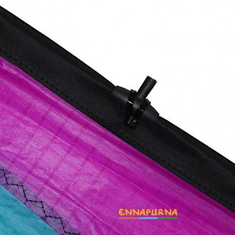 Le matériel incorpore aussi tout ce qui compose une finition soignée avec le souci du détail : échelle de nœuds pour le réglage de l’incidence selon le vent, renforts mylar sur le tissu, bord de fuite réglable avec son fil. Tout y est, y compris les blocs yo-yo pour les acrobaties !